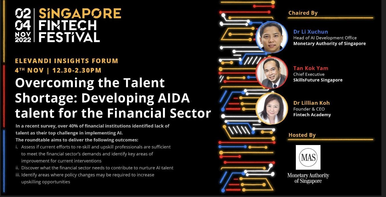 Roundtable Discussion: In a recent survey, over 40% of financial institutions identified lack of talent as their top challenge in implementing AIDA. Even though Financial Institutions (FIs) are already facing stiff competition from tech firms and other industries who are competing for tech talent, it is estimated that there will be a gap of approximately 1,600 AIDA roles for the financial sector by 2025, further exacerbating the situation. The roundtable aims to deliver the following outcomes: 1. Assess if current efforts to re-skill and upskill professionals are sufficient to meet the financial sector’s demands and identify key areas of improvement for current interventions 2. Discover what the financial sector needs to contribute to nurture AIDA talent 3. Identify areas where policy changes may be required to increase upskilling opportunities
